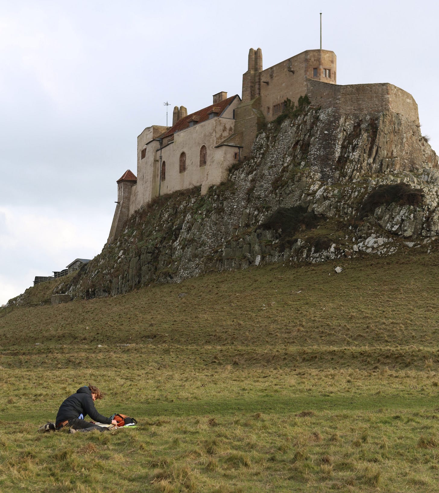Just off Lindisfarne is a tiny slip of land called Saint Cuthbert’s Island, named after the saint who lived there as a hermit. I spent several hours painting on his island, channelling my inner hermit. And let me tell you, it was astonishingly cold. I can’t fathom how he endured the elements for so long, and I doubt there were any heating grants for saints.